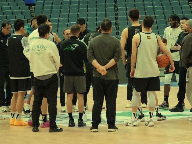 值得一提的是,在辽篮的踩场训练结束后,杨鸣告诉大家放下包袱放手一搏,首先必须要有好的比赛态度,把辽篮精神打出来。